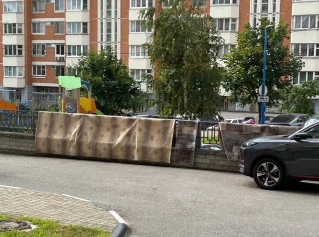 Соседи опять развесили свои паласы прямо на улице! Красота просто, особенно, когда на работу идешь между этими коврами пробираться надо.!"