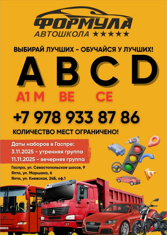Обучаем на все категории: A, B, C, D (и подкатегории A1, M, BE, CE) — выбирай, что тебе по душе 🏍🚙🚛🚌